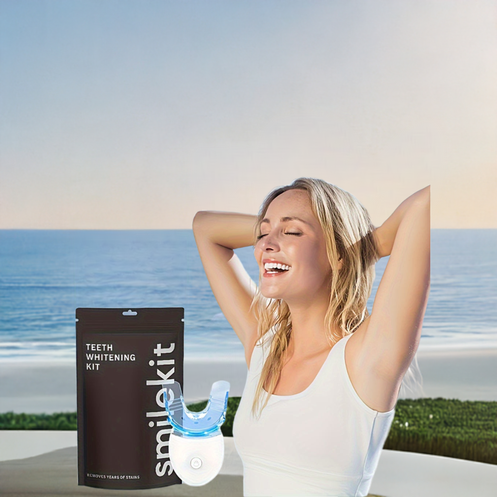 احصل على ابتسامة أكثر إشراقًا وثقة في المنزل مع مجموعة تبييض الأسنان من سمايل كيت مع ضوء LED - الحل الآمن والفعال للحصول على نتائج احترافية.