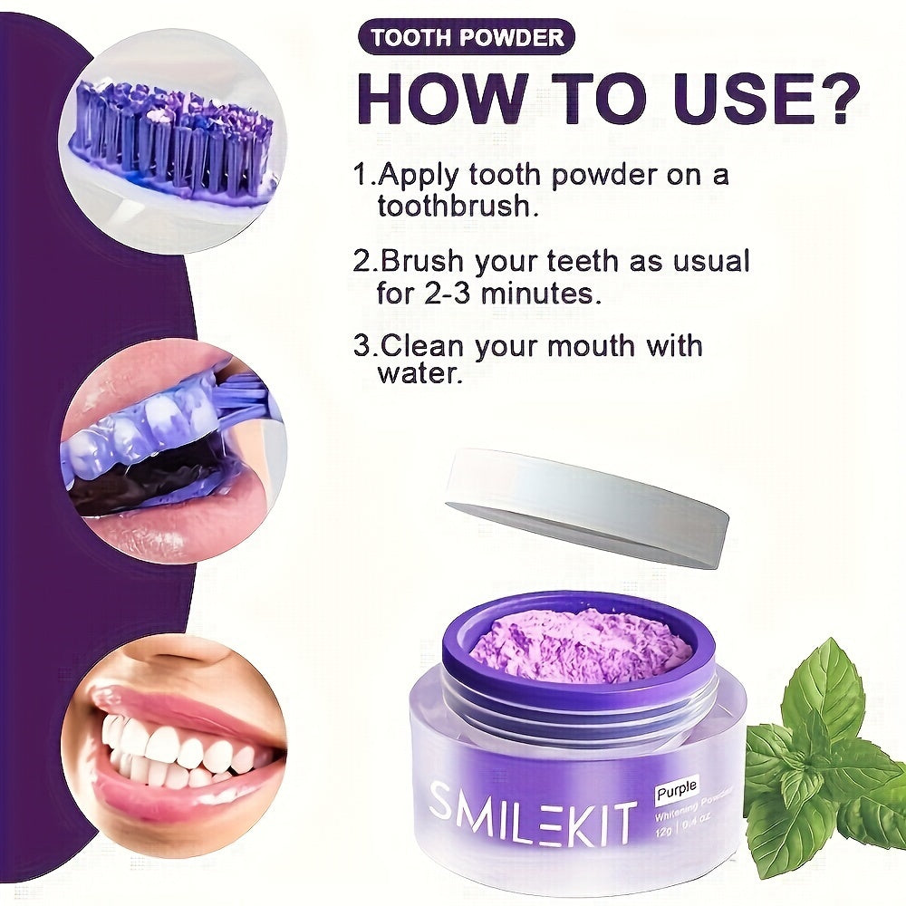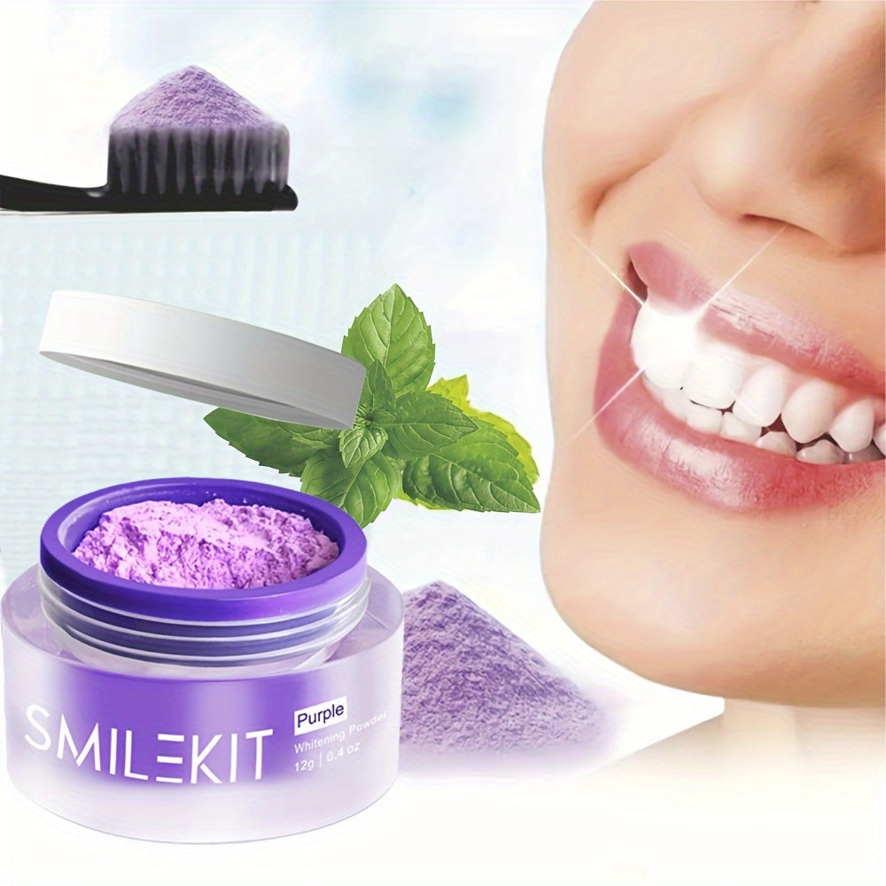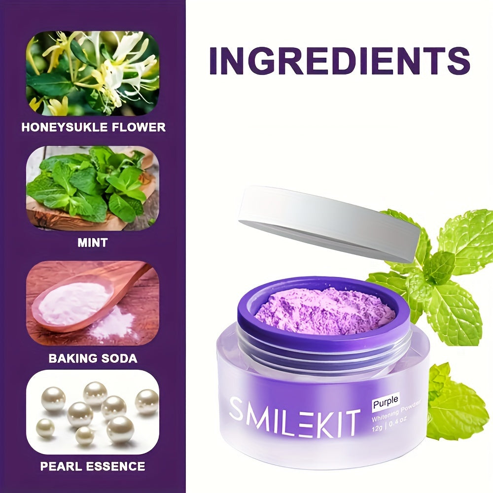 微笑更明亮,立刻——使用Smilekit紫色牙齿美白粉,这是一种创新的方法,可以实现更白、更清新的微笑。